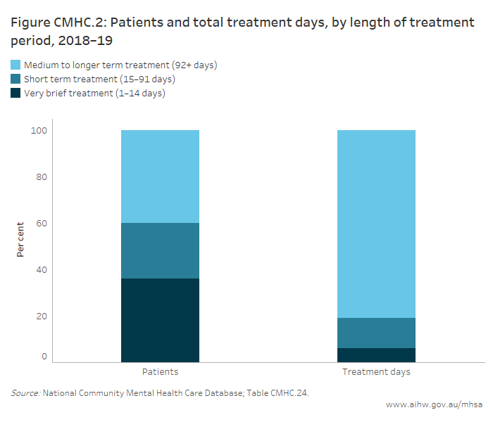 This web report provides the most recent data available on the national response of the health and welfare system to the mental health care needs of Australians. This definition was revised for Mental health services in Australia 200001 AIHW 2003 to. The statistical counting unit used to describe outcomes is an episode of mental health care the period of contact between a consumer in a single setting within a mental health service organisation bounded by the first and last collection occasions within the reporting period.