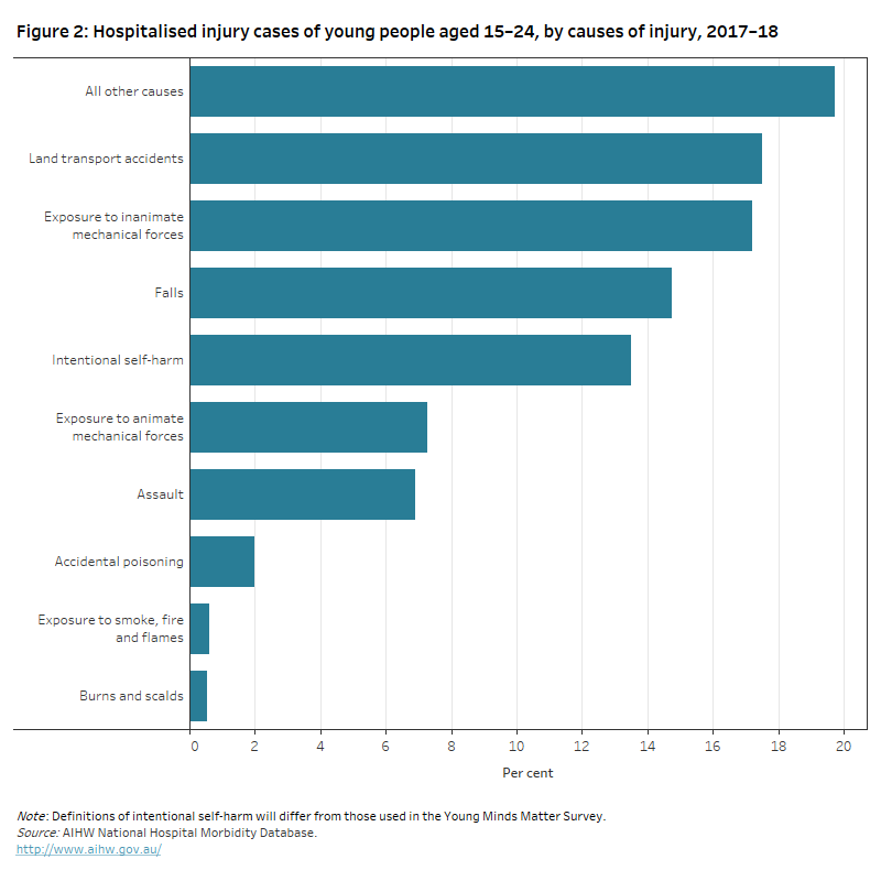Expenditure in Australian dollars by specialised mental health services that cannot be directly related to programs operated by a particular organisation or service unit that is can only be indirectly related to. Mental health is important at every stage of life. The National Survey of Mental Health and Wellbeing conducted in 2007 found that an estimated 1 in 5 20 Australians aged 1685 experienced a mental disorder in the previous 12 months ABS 2008.